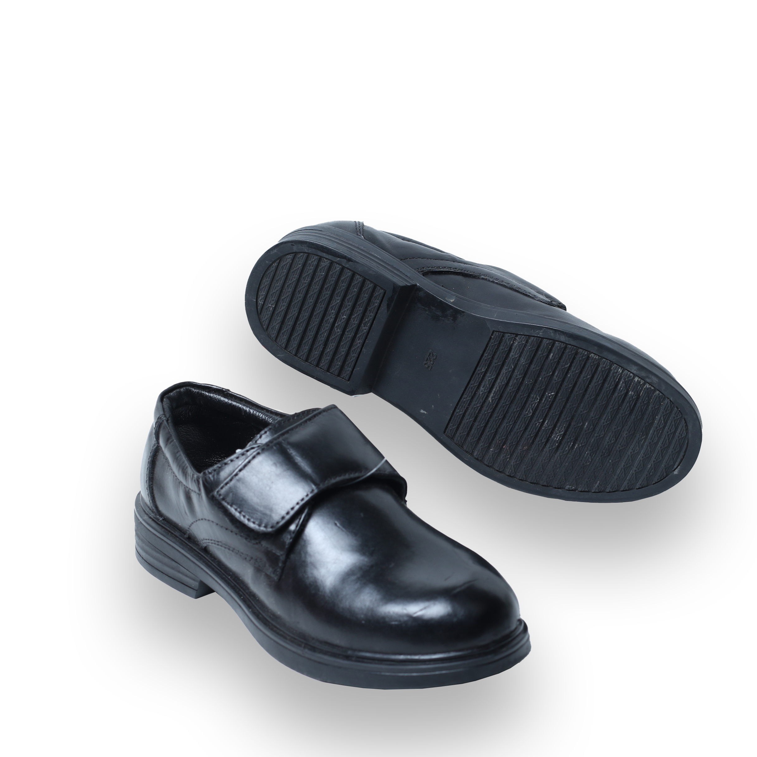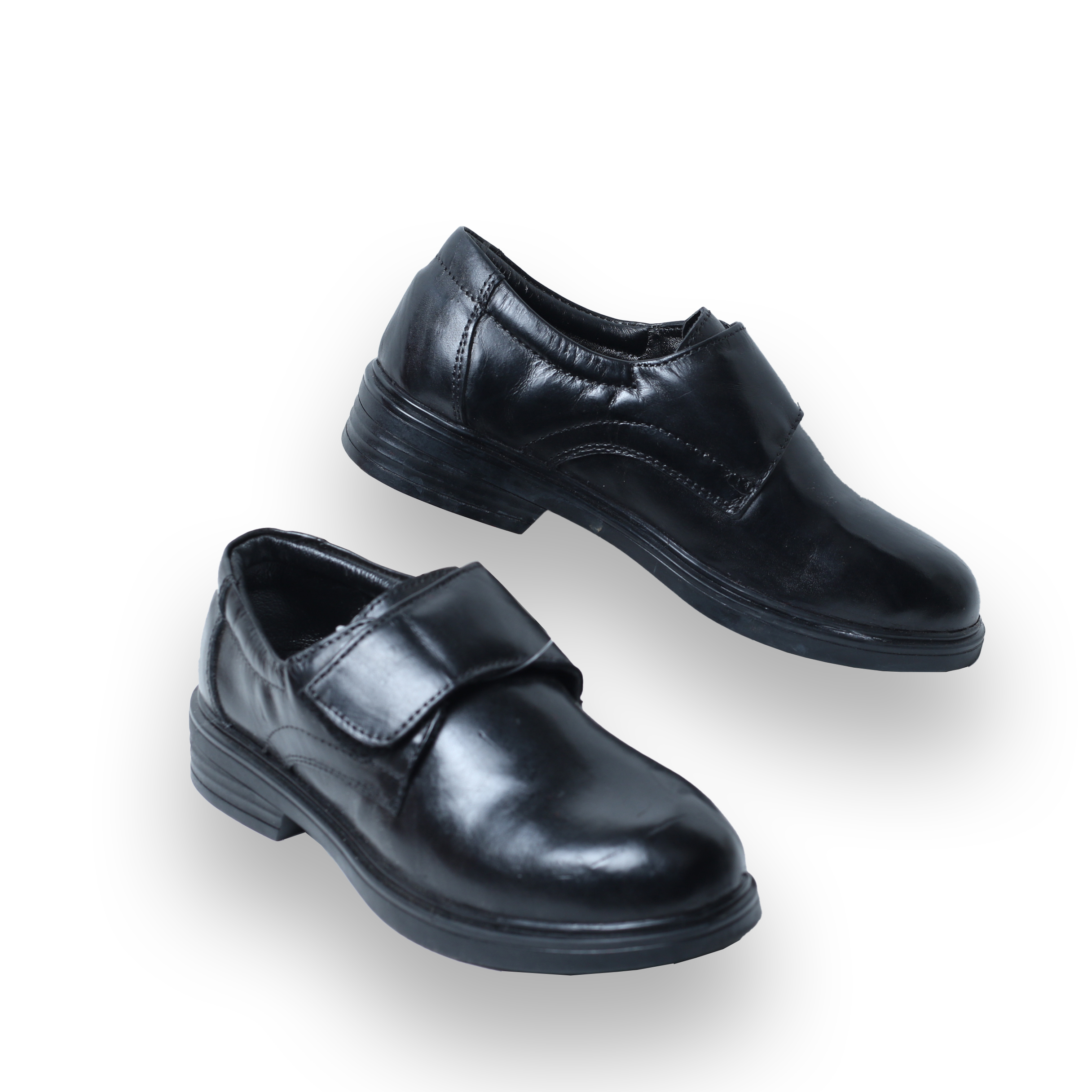 FormWalk Leather Velcro School Shoes are handmade in Tanzania from pure cow leather with a soft goat leather lining for comfort. The shiny finish and Velcro strap make them easy to wear, durable, and stylish for everyday school use.